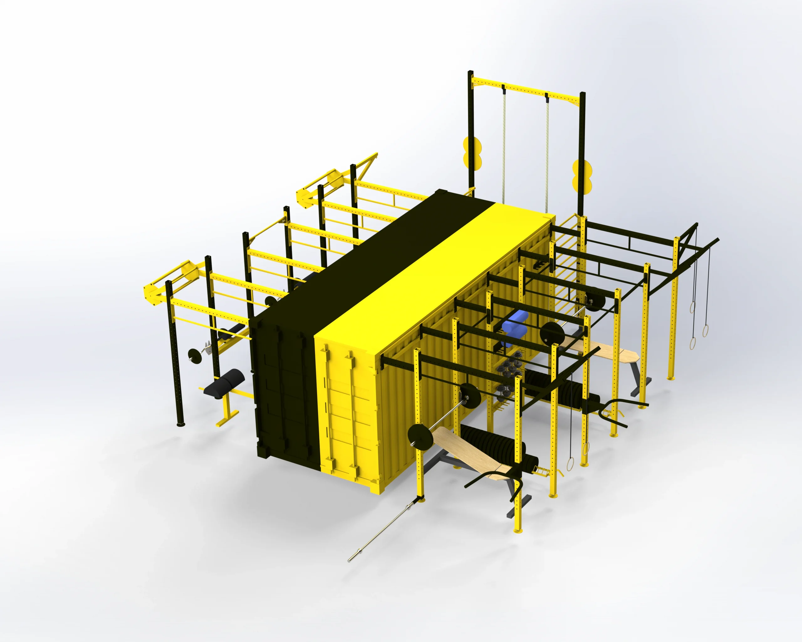 Мобільна кросфіт станція в морському контейнері — це інноваційне рішення для функціональних тренувань у будь-якому місці. Усе обладнання зручно складається всередину стандартного контейнера, транспортується й оперативно встановлюється на новій локації. Ідеально для армійських баз, спортивних заходів, тренувальних таборів та корпоративного фітнесу просто неба.
